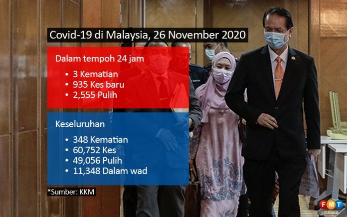 Sementara itu, bilangan kes baharu Covid-19 dalam tiga angka, iaitu 935 kes.