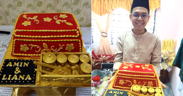 Menerusi perkongsian Muhammad Amin di laman Facebook, dia telah memuat naik beberapa gambar kek tepak sirih yang dibuatnya sendiri.