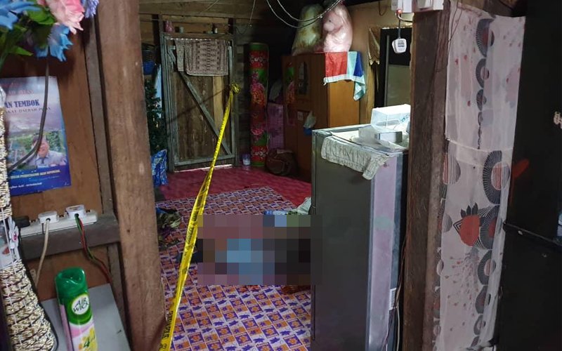 Habibah Abungon maut terlentang di dapurnya selepas ditetak tunang anaknya malam tadi. (Gambar PDRM)