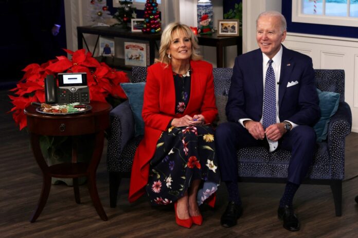 The incident, which quickly went viral online, took place after Biden and First Lady Jill Biden spoke by video conference with North American Aerospace Defense Command (NORAD) officials, who track Santa’s travel across the globe.