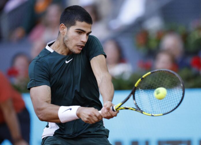 Spain’s Carlos Alcaraz Garfia in action during the final against Germany’s Alexander Zverev at Caja Magica, Madrid May 8, 2022. — Reuters pic