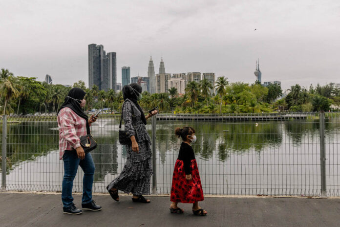 People wearing face masks are seen at the Titiwangsa Lake Gardens in Kuala Lumpur February 24, 2022. — Picture by Firdaus Latif