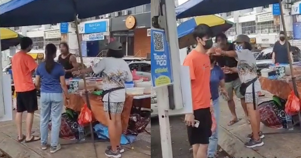 In the video of the incident that happened on Sunday, the man, dressed in a black singlet, is seen hurling abuses and taunting another customer at the stall to call the police on him for not wearing a mask