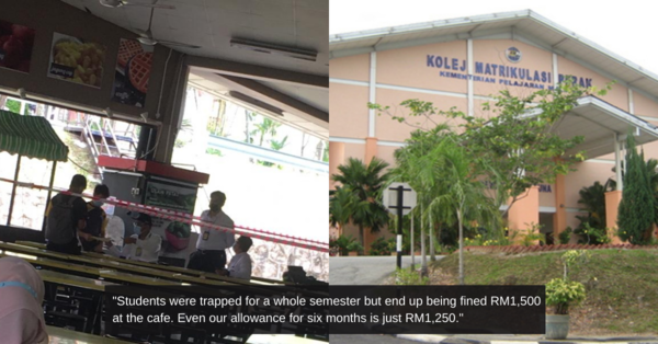A Twitter user uploaded a photo of several students being written up by Ministry of Health (MOH) officials and wrote, “Perak Matriculation College students were trapped for a whole semester but end up being fined RM1,500 at the cafe. Even our allowance for six months is just RM1,250.”