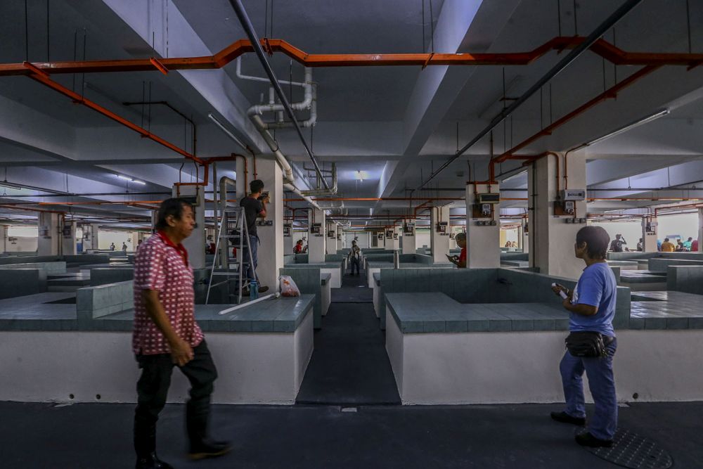 An electrician is pictured fixing the power meter of a wet market stall at Pasar MPS Selayang Baru October 3, 2019. — Picture by Hari Anggara