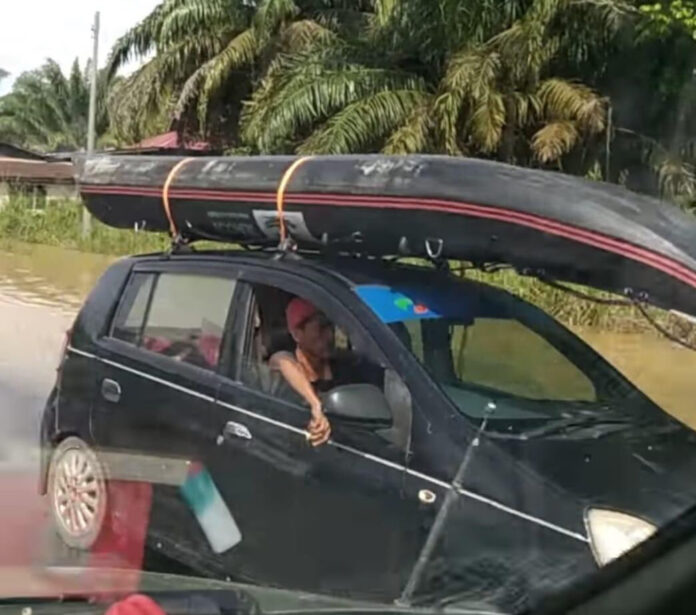 Azwan Omar has become a social media sensation and won the hearts of the people of various races when a Twitter user posted about his willingness to travel to Selangor from Melaka in his Perodua Viva with a boat strapped on the roof of the car to rescue residents trapped in their flood-hit house. — Picture from Twitter/nanonadio