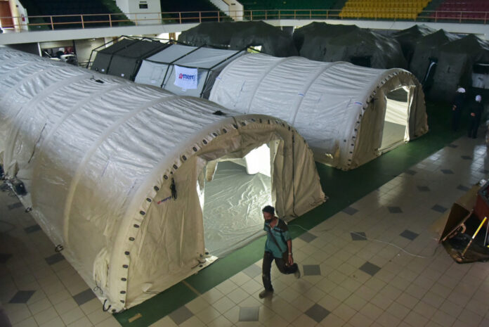 Mercy Malaysia’s tents set up at the field hospital in Labuan Corporation’s multipurpose hall, June 24, 2021. — Bernama pic