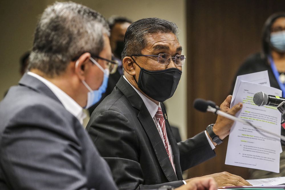 Datuk Seri Takiyuddin Hassan speaks during a press conference on the Emergency Ordinance in Putrajaya March 12, 2021. — Picture by Hari Anggara