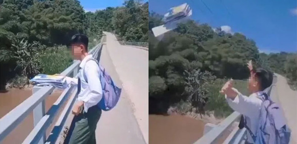A video of a student celebrating the end of his Sijil Pelajaran Malaysia (SPM) examinations by throwing his books into a river recently went viral