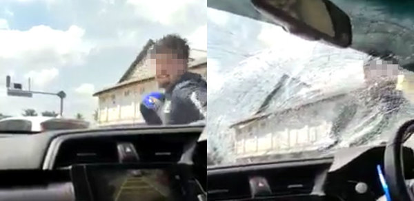 “The incident was due to the way how both of them drove or rode, which led to the suspect acting aggressively by breaking the windscreen of the victim’s car,” Zaharudin said in a statement yesterday.