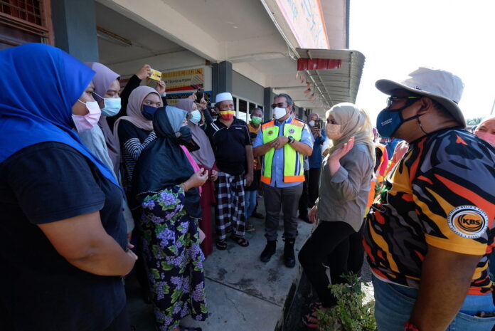 Women, Family and Community Development Minister Datuk Seri Rina Mohd Harun visits a flood relief centre in Kuala Langat December 21, 2021. — Bernama pic