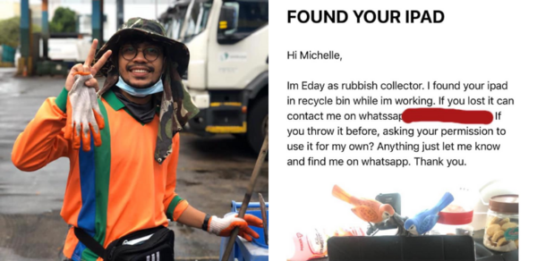 M’sian Garbage Collector Working In SG Returns iPad To Owner 1 Year After It Went Missing