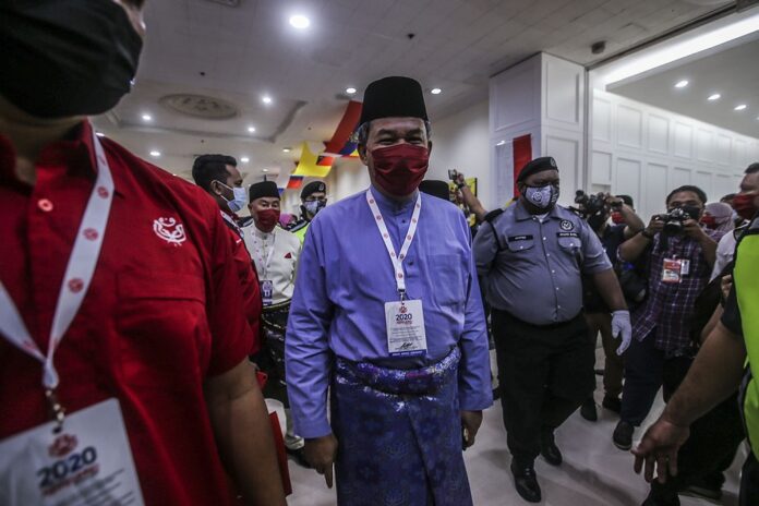 Umno deputy president Datuk Seri Mohamad Hasan arrives at the 2020 Umno annual general meeting in Kuala Lumpur March 27, 2021. – Picture by Hari Anggara