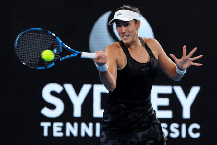 Garbine Muguruza of Spain hits a return against Daria Kasatkina of Russia during their women’s singles quarter-final match at the Sydney Classic tennis tournament in Sydney, January 13, 2022. — AFP