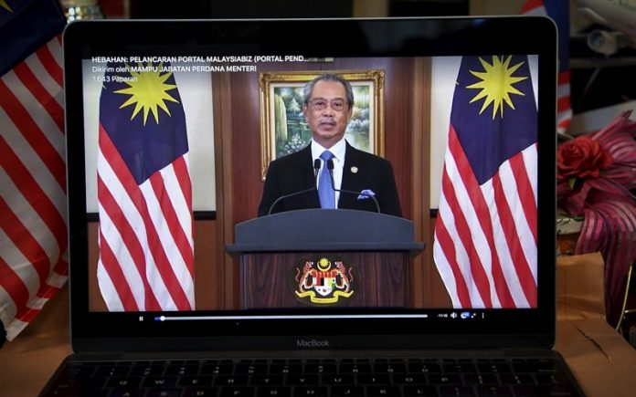 Prime Minister Muhyiddin Yassin at the virtual launch of the MalaysiaBiz portal today. (Bernama pic)
