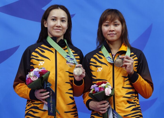 Leong Mun Yee (left) is pictured with frequent diving partner Pandelela Rinong.– Reuters pic