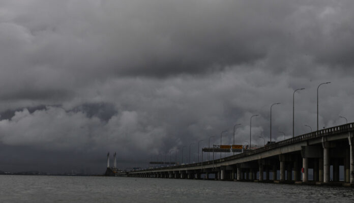 Rain clouds over George Town in Penang, December 2, 2021. Earlier today, the Meteorological Department (MetMalaysia) issued an orange level bad weather alert with continuous heavy rain involving all districts in Kelantan and Terengganu until December 17. — Bernama pic