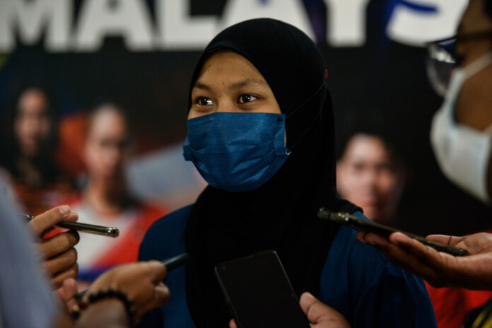 Siti Nurshuhaini Azman speaks to reporters after a training session at the Academy Badminton Malaysia (ABM) in Bukit Kiara, February 8, 2022. – Bernama pic