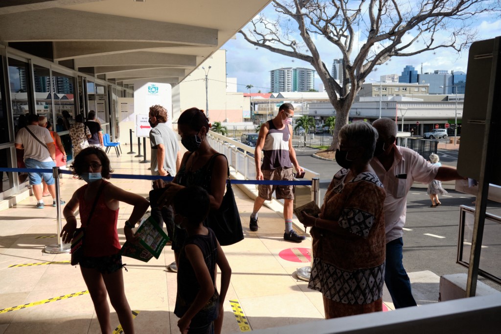 Residents wait to vote for the referendum on independence outside a polling station of the City Hall in Noumea, on the French South Pacific territory of New Caledonia on December 12, 2021. — AFP pic