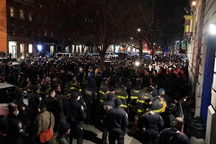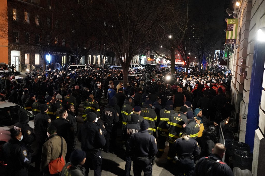People attend a vigil following the shooting of two police officers in Harlem, New York on January 22, 2022. New York’s mayor called on the federal government to help ‘stop the flow of weapons’ in the city after a police officer was killed and another wounded in a shooting on January 21, 2022. — AFP pic