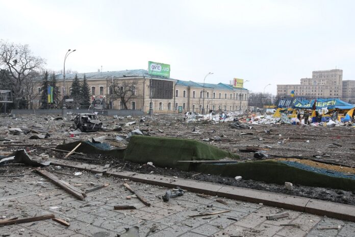 A view shows the area near the regional administration building, which city officials said was hit by a missile attack, in central Kharkiv, Ukraine March 1, 2022. — Reuters pic