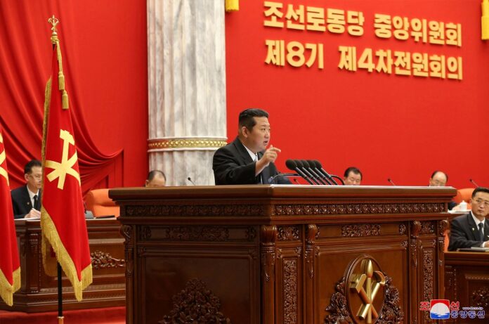 North Korean leader Kim Jong-un chairs a session of the 4th plenary meeting of the 8th Central Committee of the Workers’ Party of Korea (WPK), in this photo released on December 29, 2021 by North Korea’s Korean Central News Agency (KCNA). – KCNA/via Reu