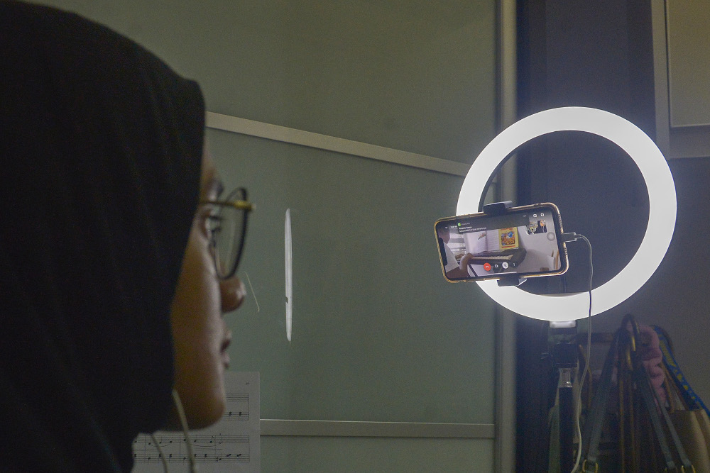 A music teacher teaches an online piano class during the movement control order (MCO) in Shah Alam January 24, 2021. — Picture by Miera Zulyana