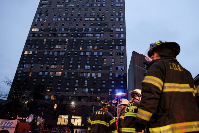 Emergency personnel from the New York City Fire Department (FDNY) respond to an apartment building fire in the Bronx borough of New York City January 9, 2022. — Reuters pic