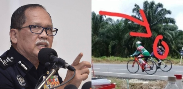 Pihak polis memberi amaran kepada mana-mana penunggang basikal terutamanya kepada seorang wanita yang didapati berbasikal sambil mendukung anak di belakang badannya