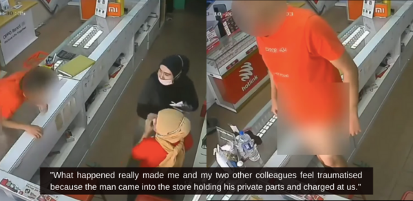 While speaking to Harian Metro, one of the women involved said, “This time, what happened really made me and my two other colleagues, aged 23 and 25, feel traumatised because the man came into the store holding his private parts and charged at us.”