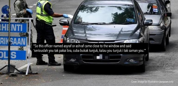 In her tweets, she alleges that the officer – whom she named as Asyraf or Ashraf – came close to the driver’s side window and told her if she showed him she’s not wearing a bra, he wouldn’t issue her a fine