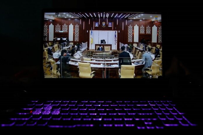 Live telecast of the Penang state legislative assembly session in George Town, September 2, 2021. Chief Minister Chow Kon Yeow said the state government spent this allocation under the Special Assistance Package (Penang Lawan Covid-19) Phase 1, 2 and 2.1. – Picture by Sayuti Zainudin