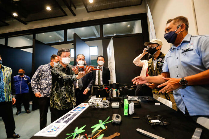 Penang Chief Minister Chow Kon Yeow visits a booth after the launch of Creative Digital District at Think City, February 25, 2022. — Picture by Sayuti Zainudin