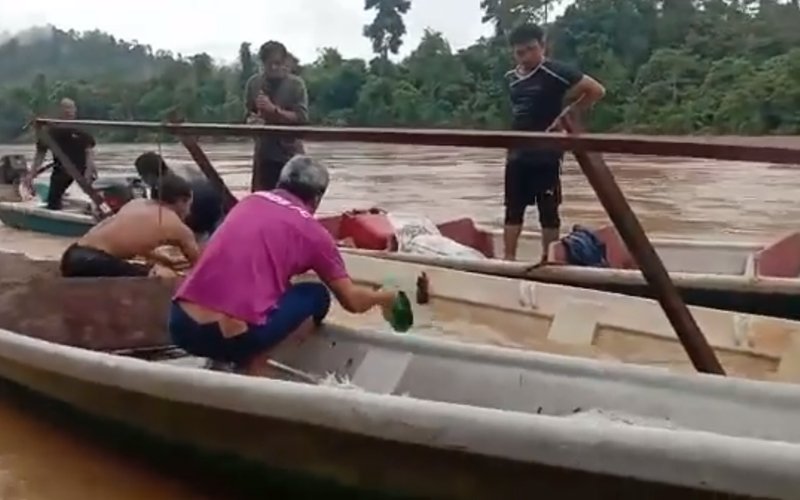 Penduduk Kg Bantal, Ulu Tembeling di Jerantut, Pahang, membantu menyelamatkan bot yang dinaiki petugas Kementerian Kesihatan Malaysia (KKM).