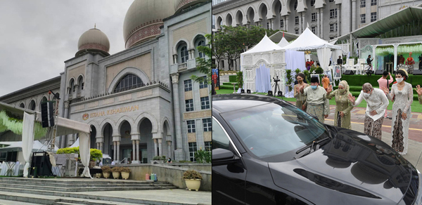 Datuk Seri Tengku Adnan Tengku Mansor, who has retained the Putrajaya parliamentary seat since its inception in 2004, held his son’s wedding reception in front of the Palace of Justice, Putrajaya today, 20 December. The ceremony started at 11am and ended at about 2pm.