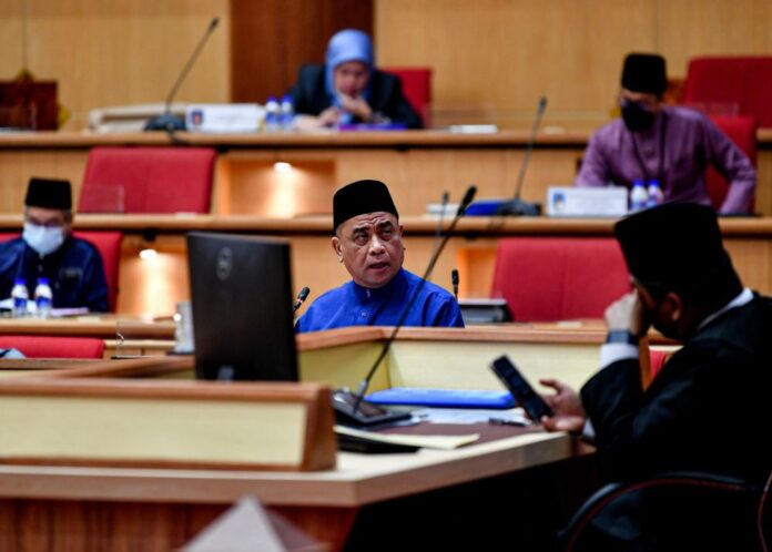 Mentri Besar Datuk Seri Saarani Mohamad tables the Perak state Budget 2022 at the Perak Darul Ridzuan building in Ipoh December 10, 2021. — Bernama pic