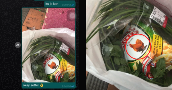 Namun, tidak lama selepas itu si rakan memberikan gambar bahan-bahan dapur yang diminta tetapi melihat satu keropok ayam di situ. Disebabkan itu, dia terus memberikan pesanan suara dan memarahi rakannya itu.