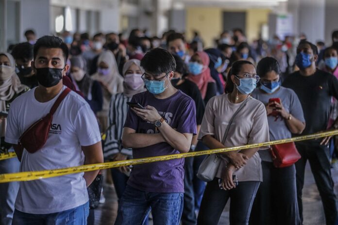File picture shows people waiting in line to receive their AstraZeneca Covid-19 vaccine shot at the Vaccine Delivery Centre located at Kuala Lumpur World Trade Centre May 29, 2021. — Picture by Hari Anggara