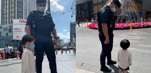 “This Malay abang policeman [was] using his body to shield a Chinese boy from the sun when the boy [was] standing in front of Pavilion to see the ‘Golden Bull’ screen,” read a post with the photos