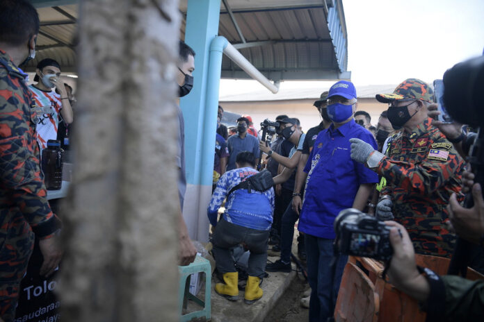 Prime Minister Datuk Seri Ismail Sabri Yaakob visited the flood-affected areas at the Malaysian Family ‘gotong-royong’ programme in Taman Nanding, Hulu Langat December 26, 2021. — Bernama pic