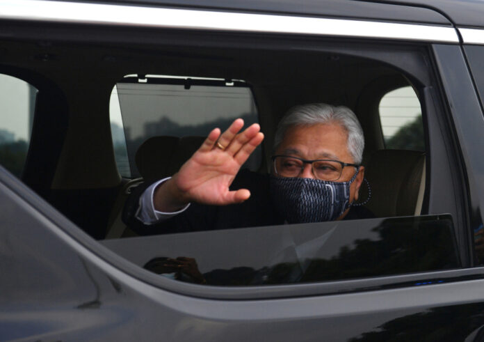 Prime Minister Datuk Seri Ismail Sabri Yaakob waves to the media at Perdana Putra after his audience with the King in Kuantan today, August 26, 2021. — Bernama pic