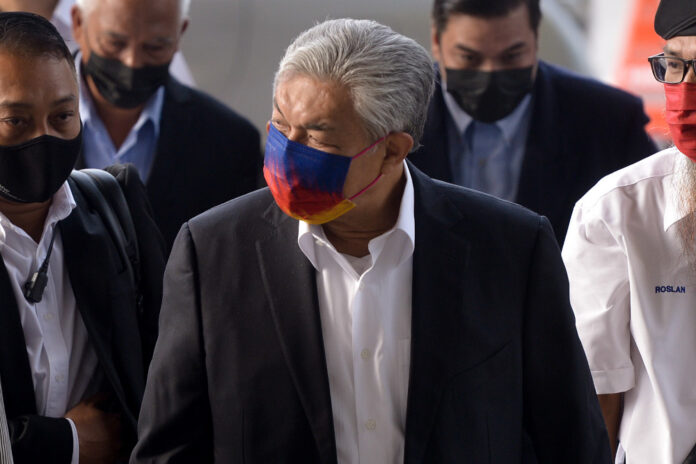 Datuk Seri Ahmad Zahid Hamidi arriving at the Kuala Lumpur High Court, October 5, 2021. — Picture by Miera Zulyana