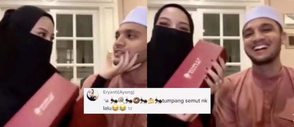 Menerusi perkongsian video daripada akaun TikTok @nhtruelove, pasangan itu dilihat sedang membuat rakaman live sambil membuat review sebuah produk.