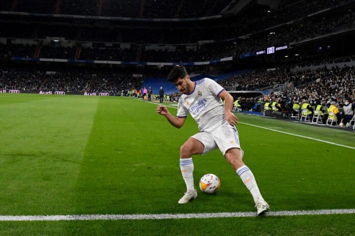Real Madrid’s midfielder Marco Asensio controls the ball during the Spanish league match between Real Madrid CF and Deportivo Alaves at the Santiago Bernabeu stadium in Madrid, February 19, 2022. — AFP pic