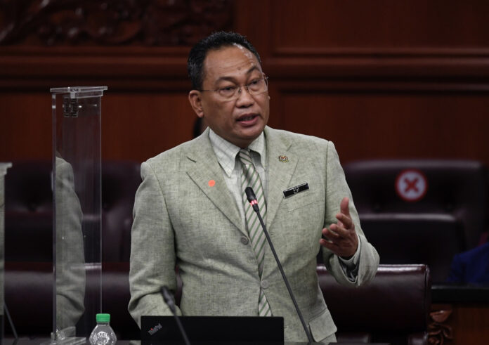 Deputy Human Resources Minister Datuk Awang Hashim speaks in Parliament December 22, 2021. — Bernama pic