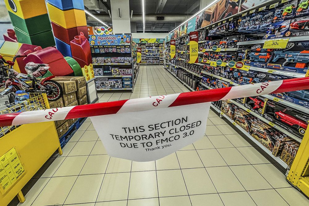 A section selling toys is cordoned off at the Lotus hypermarket in Kepong June 7, 2021. — Picture by Hari Anggara