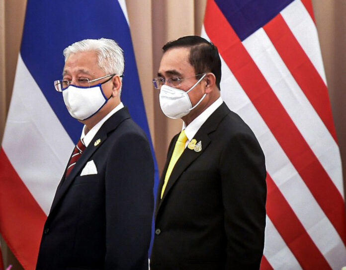 Prime Minister Datuk Seri Ismail Sabri Yaakob with Thai Prime Minister Prayuth Chan o-cha at a dinner in conjunction with the prime minister’s official visit at Government House in Bangkok, February 25, 2022. — Bernama pic