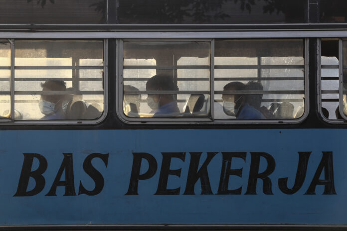 Top Glove Corporation Berhad’s workers are seen in a bus in Klang November 16, 2020. — Picture by Yusof Mat Isa
