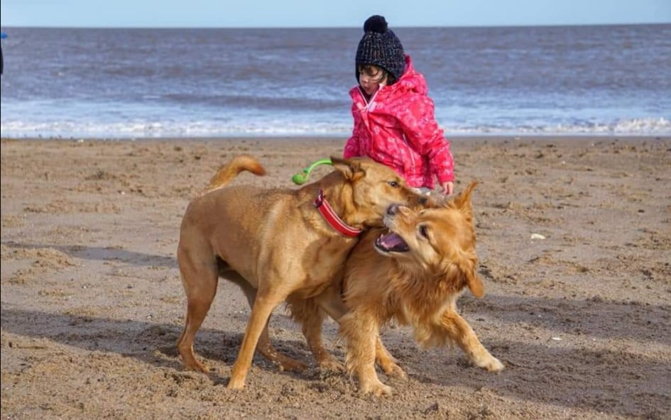 The pooches playing with each other on the beach. (Cheryl Ellron-Boulter pic)