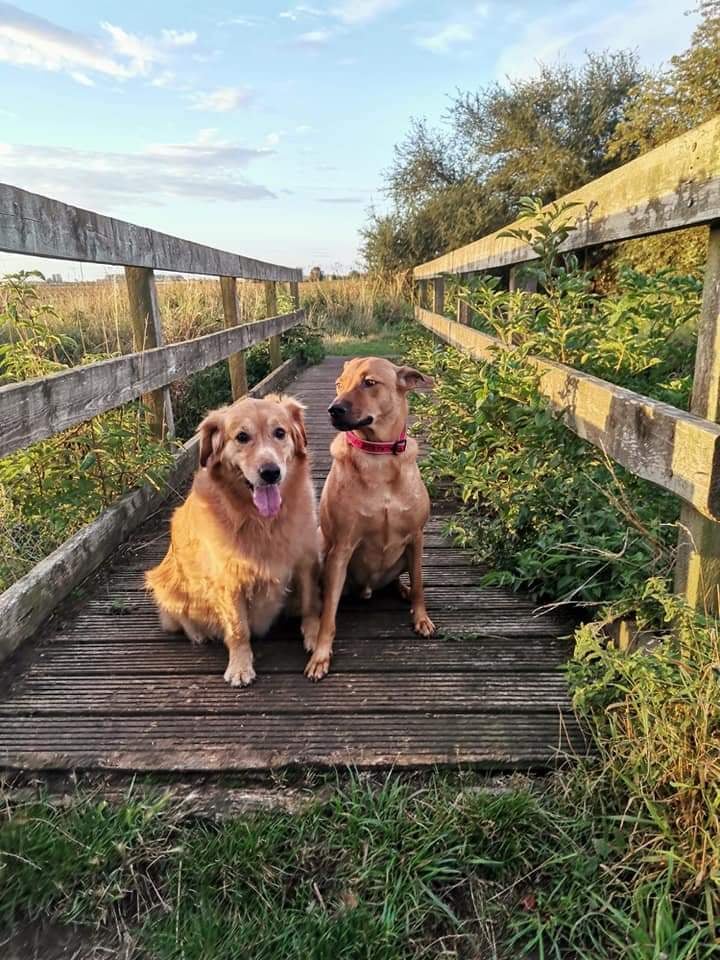 Rolls and Bentley out on one of their walks in the English countryside. (Cheryl pic)